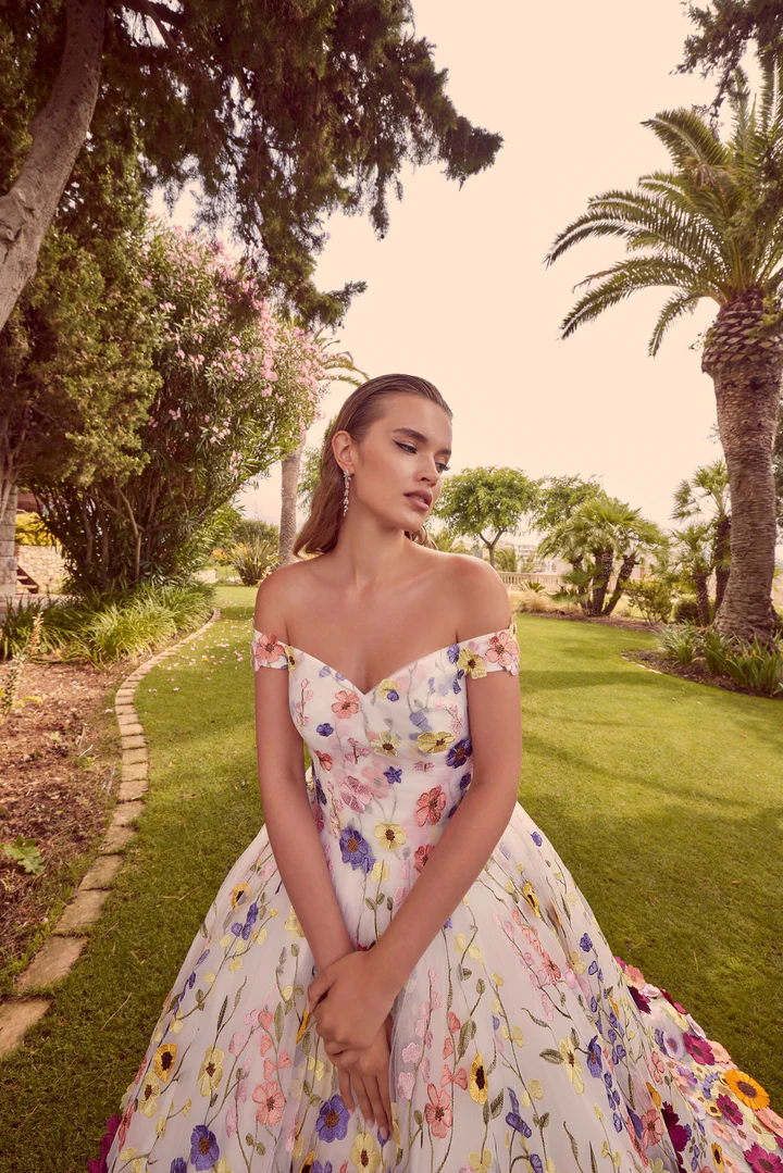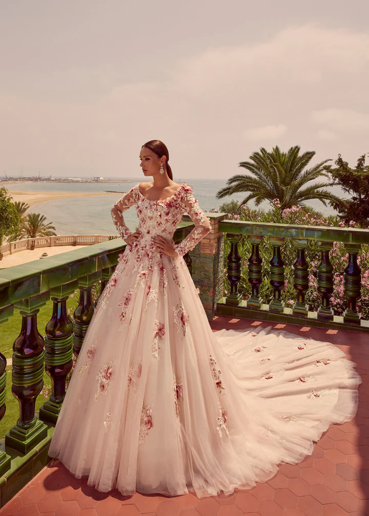 From blush tones with delicate florals to daring multicolour 3D appliqués, these gowns are works of art that tell your love story.